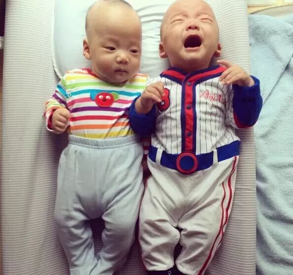 “飞翔刷脸小分队”俩宝贝今天已经满六个月了,因为自嗨派爸比的不懈坚持,网友都能Get到两位小宝贝各自的特殊萌点,黑人还经常给俩兄弟配文内心OS,哥哥飞飞比较爱哭,弟弟翔翔一直很淡定。