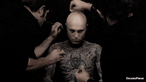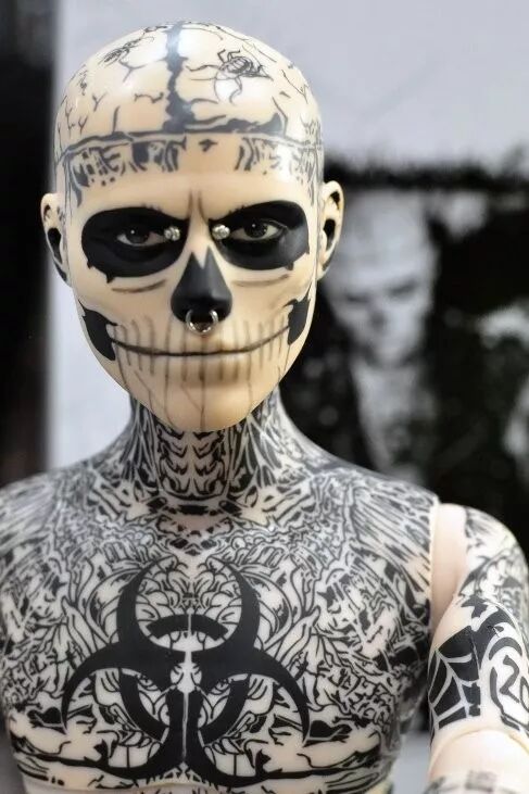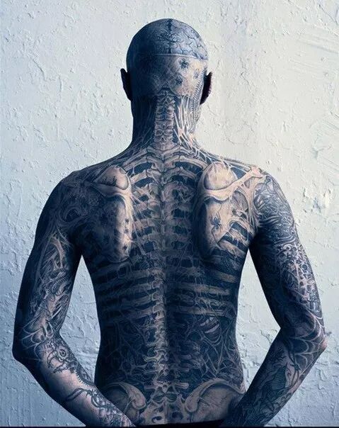 16岁的时候,他决定开始文身,当文上了第一块的时候,他就爱上了这种感觉。06年,完成了面部刺青,整个过程花费了超过20个小时。到布满全身,他花了整整7年。
