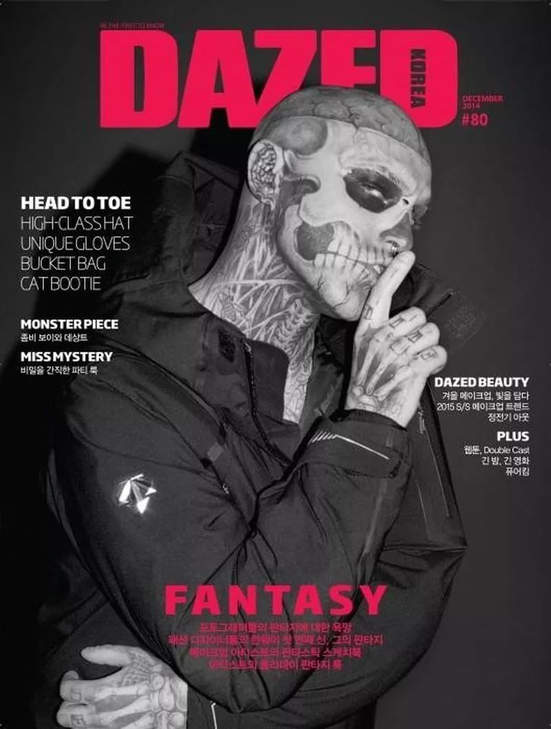 真正令Rick事业飞黄腾达的,还要依靠Nicola Formichetti,Lady Gaga的造型师及法国时装屋Mugler的创意总监。当时Formichetti在一本名为《Dress to Kill》的暗黑系杂志上发现了他,并开始疯狂着迷,通过Facebook联系到了僵尸男孩。