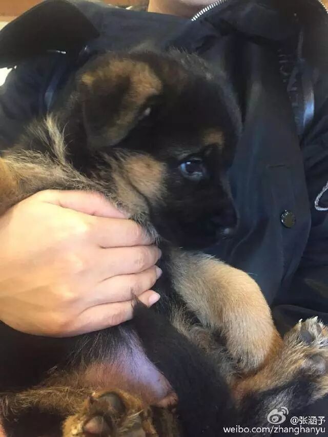 张涵予抱着小奶狗的照片,这个反差实在太萌~