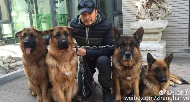 张涵予家目前有四只德牧,丝丝、乌索斯、辛巴、太郎