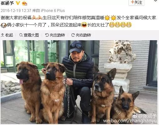 然而,自从看了张涵予养的宠物狗德牧之后,小编发现张涵予非常柔情的一面~~