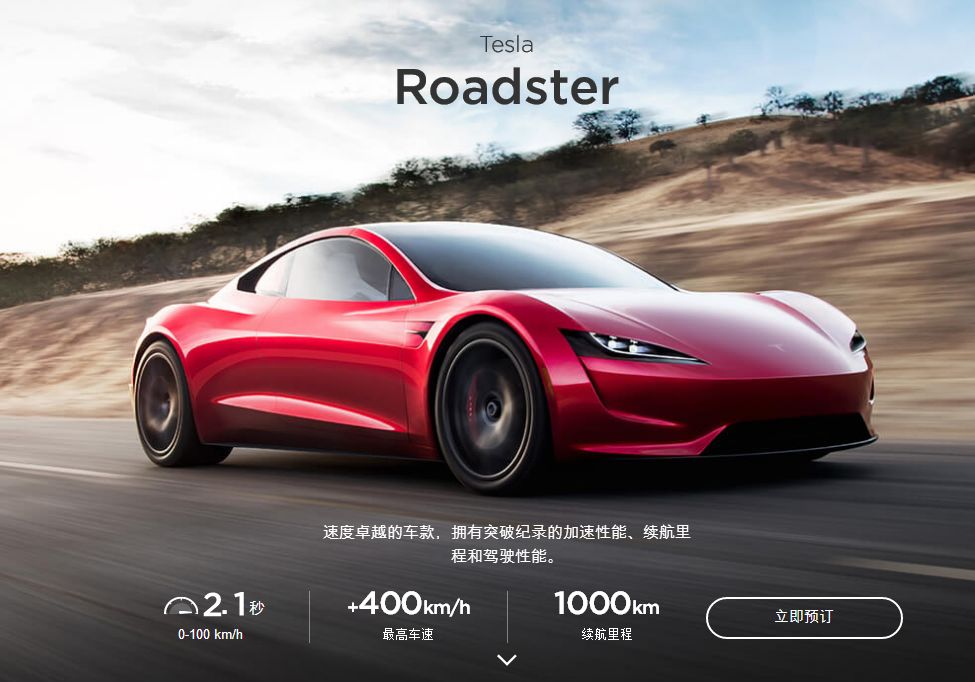2017年11月17日,特斯拉发布了第二代Roadster Sport电动跑车。这个家伙当时以几个简单的数字就震惊了整个汽车圈,这几个数字包括:加速到60英里/小时仅需1.9秒(相当于96公里/小时),加速到100英里/小时仅需4.2秒,这个速度已经超过了2017款布加迪Chiron和2014款保时捷918Spyder,成为当今加速最快的量产车;包括可在9秒内可直线行驶四分之一英里,最高临界时速可达250英里/小时(402千米/时);包括搭载的一块200千瓦时电池,可提供续航里程620英里(997公里);包括三个电动机加起来10,000 N·m的扭矩。