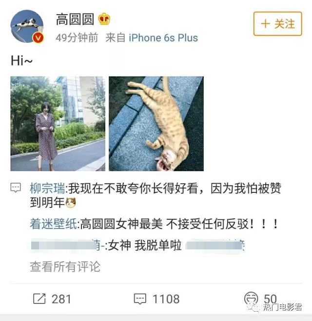 文/热门电影君(原创文章,谢绝转载,侵权必究)9月3日,内地知名女演员高圆圆发布了一条微博向粉丝们问好,并晒出了自己在路边吸猫的美照。看到许久未见的女神终于发博了,不少网友们也表示很惊讶,纷纷感叹道女神终于肯现身了啊。