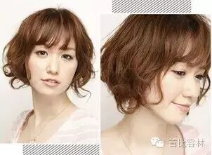 一头棕色短卷发配上一个空气刘海,瞬间给人带来清爽利落的感觉,脸颊旁的卷发能有效修饰脸型,同时在空气刘海的衬托下使你的眉目更为动人。