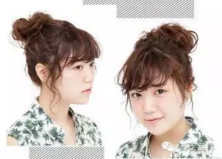 空气刘海配上丸子头,薄薄的刘海很容易根据发型的需要制造出凌乱感,搭配两侧卷曲的发丝,立刻使人化身青春活泼的美少女。