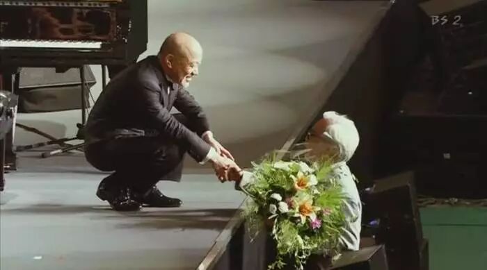 开头的视频,便出自这场演出,在全场观众都不知道宫崎骏也在现场的情况下,宫崎骏缓缓穿过观众席,为热泪盈眶的久石让献花,仿佛一次世纪“表白现场”,真的要被甜炸了!