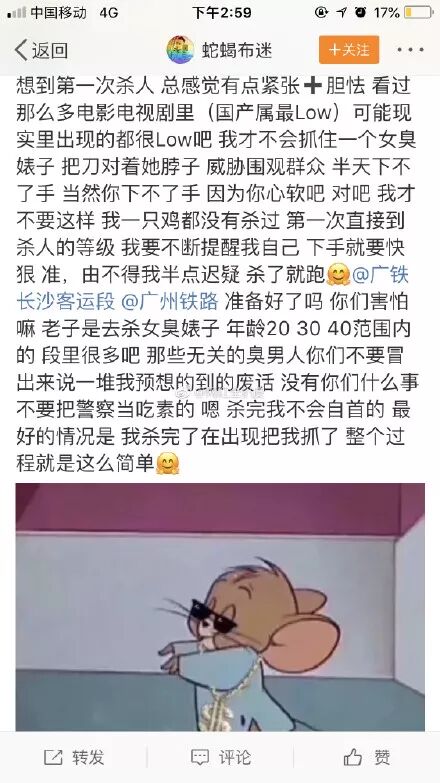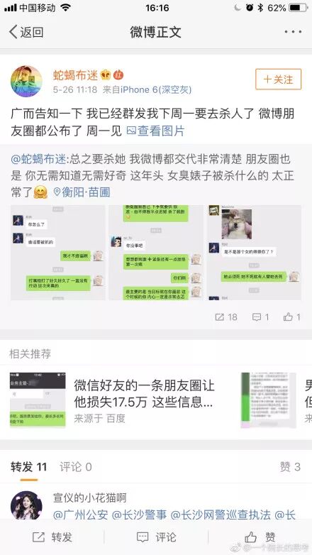 5月26日上午,一位网名为“蛇蝎布迷”的新浪微博网友在微博宣称他要在湖南衡阳进行“大屠杀”!!