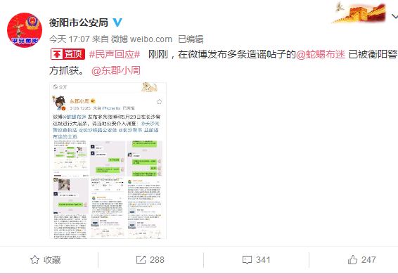 5月26日下午17时,湖南衡阳警方官方微博通报已将该嫌疑人抓获!