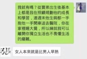 更不要脸的是,自己反而理直气壮:女人本来就是比男人早熟。