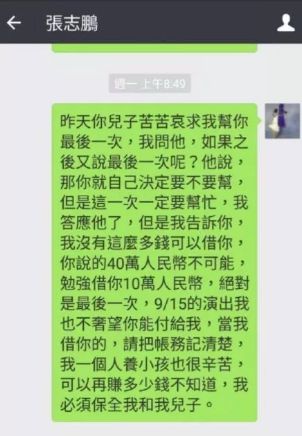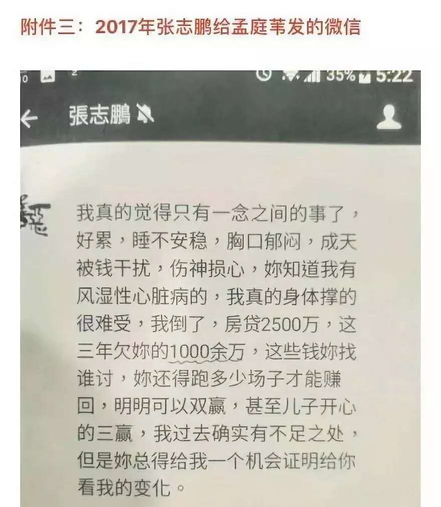 多年来,张志鹏一直无休止的跟孟庭苇要钱,威胁恐吓她,甚至拿儿子和父母要挟孟庭苇。