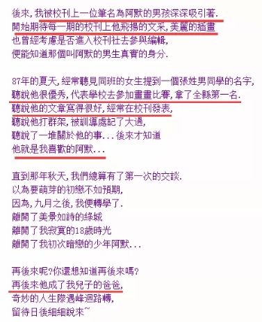 2008年,孟庭苇曾在博客中写下《我的初恋》,文中说,当年自己暗恋的少年,后来成了儿子的爸爸,奇妙的人生际遇。