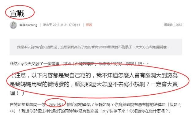 后来,年幼的儿子宝弟也嫁入到这场家庭大战中,斥责父亲张志鹏出轨、家暴,公开发文宣战父亲和小三、力挺母亲。