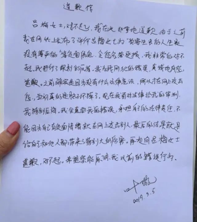 之后叶璇也只能手写道歉信向小默先生前女友道歉。