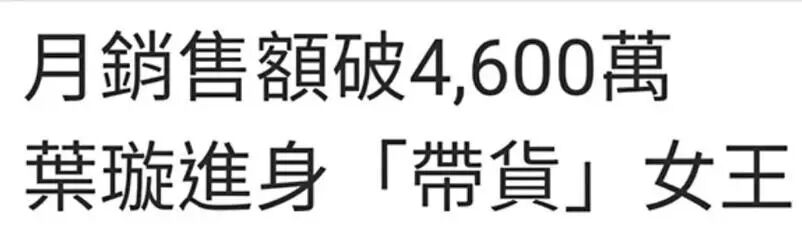 而且叶璇的直播成绩非常好,月销4600多万,扣去成本啊等等这些,一个月7位数的收入也妥妥没问题,和其他明星相比,叶璇的直播水平应该是最高之一。