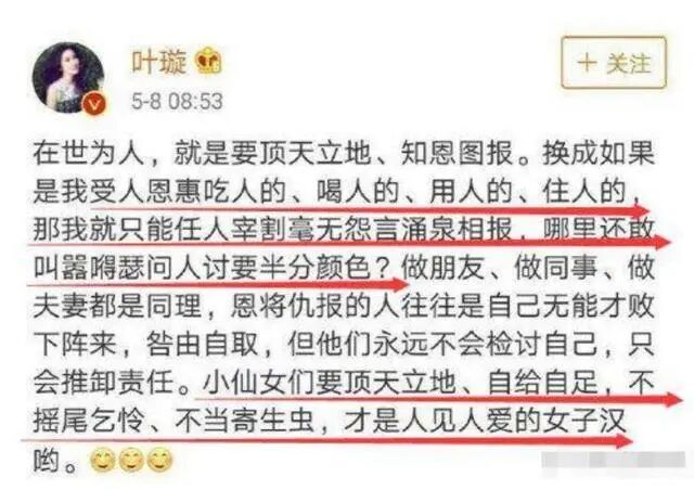 当时叶璇还在微博上攻击小默先生的前女友,暗示前女友不够自己优秀所以会才会被分手的。