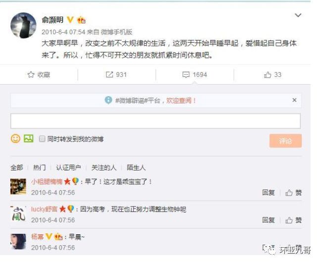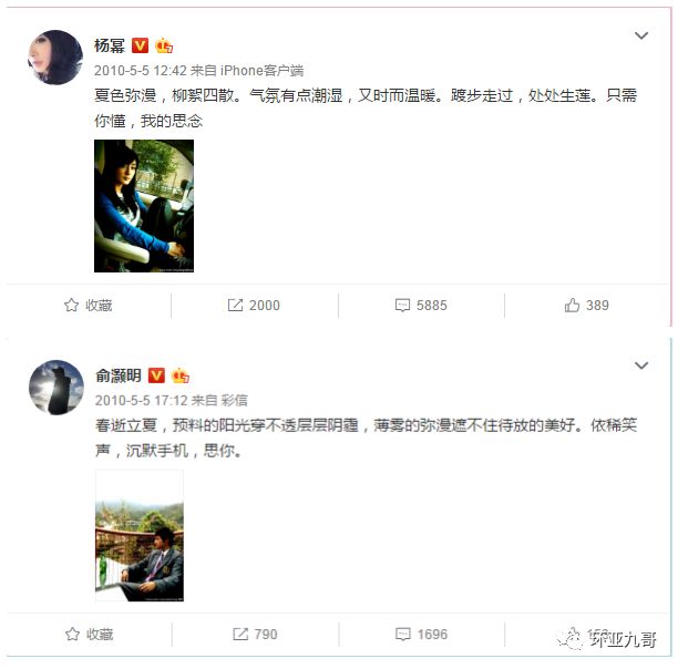 当初俞灏明发博,大幂幂甚至在底下评论“早晨~”向其问好。