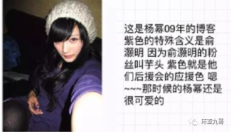 早在2009年,杨幂就曾经发过一个博客,说自己最喜欢紫色,还说什么紫色的特殊含义你懂的。而紫色,恰好是俞灏明粉丝后援会的应援色。