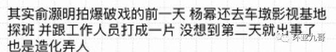 之后时间就到了10月,俞灏明片场烧伤的日子。