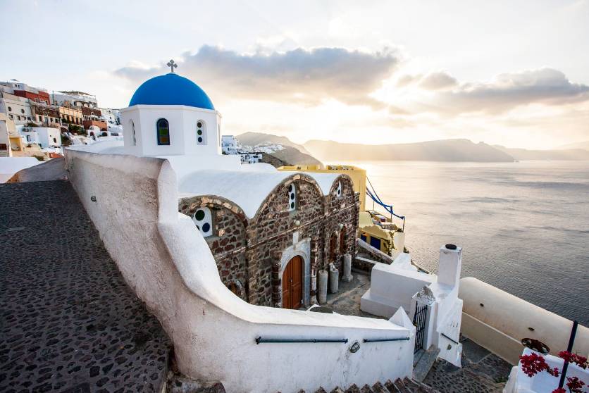 若是去希腊,当然要去圣托里尼。这是座被爱琴海包围着,空气中弥漫着浪漫气息的小岛。安静地坐落在爱琴海的天地之间,蓝白交相辉映。在这个童话般神奇的地方,办一场属于公主的婚礼,面对湛蓝的大海许下彼此的誓言。此刻还有什么理由不相信爱情呢?