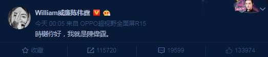 并且时樾成功追星——大明星陈伟霆竟然在微博上向时樾介绍了一下自己!