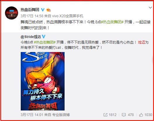 而炫迈和《热血街舞团》是有合作的,两大官博还在微博上互动