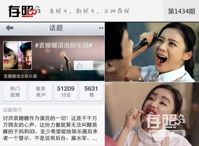 ▲图左为“袁姗姗滚出娱乐圈”话题,图右为袁姗姗《煎饼侠》中的雷人演技