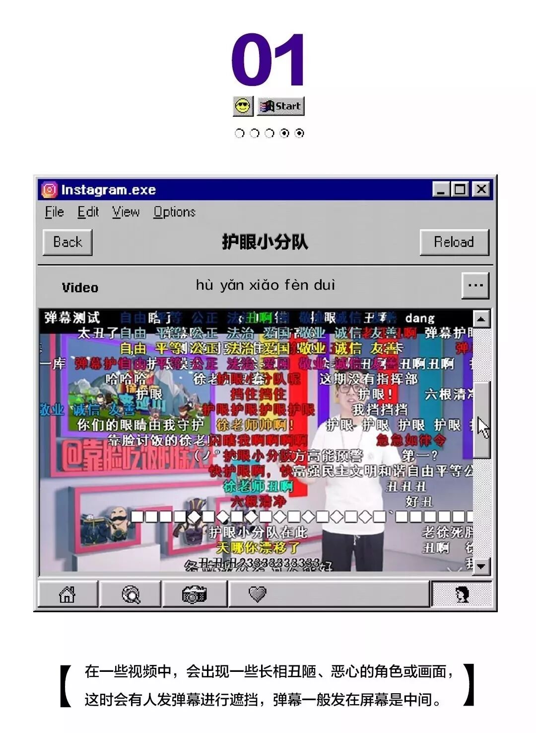 常见的弹幕有“护眼小分队”和“自由,平等,公正,法治”等等。