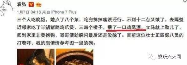 2018年1月7日,袁弘发博称3个人,她点了八个菜,不到十二点又饿了…抿了一口鸡尾酒,让人真的是瞠目结舌啊,怀孕了还能喝酒吗?