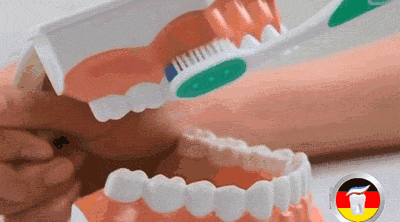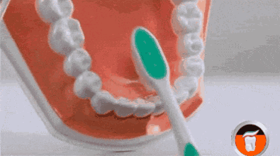刷上颚牙齿:将牙刷对准牙齿和牙龈交界处,使牙刷毛和牙床轴成45度角,从牙龈线处开始扫动、拂刷。