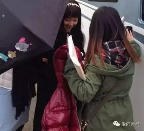 近几天青岛的温度,穿单间衣服确实有点了。还好,剧组人员羽绒服随时伺候。