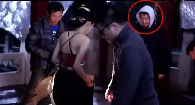 瞧!那位戴着白色帽子的大哥笑得这么邪乎,赵丽颖根据导演的要求,来回做了好几次动作!看着边上各个穿着棉袄羽绒服,真有点心疼颖宝!