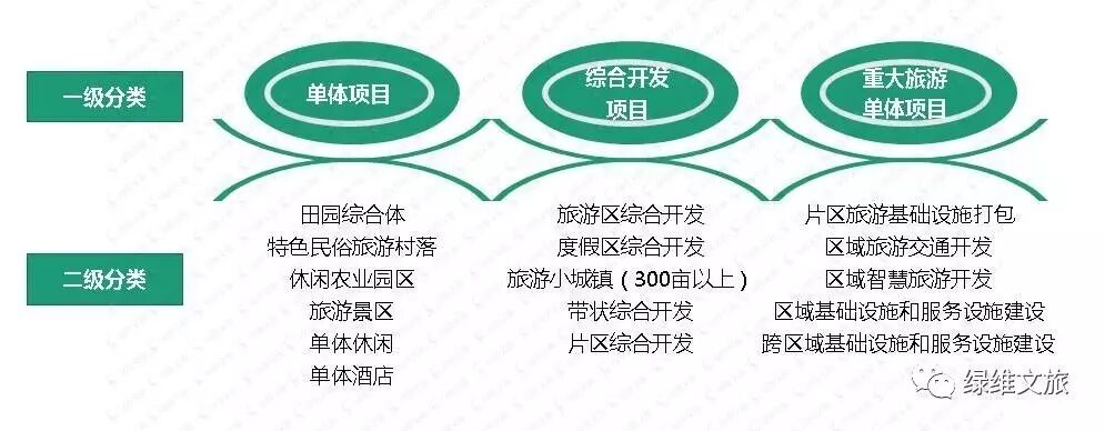 (2)旅游综合开发项目:旅游综合开发项目由若干相互关联的单体项目构成,拥有两类以上单体项目,同时项目建设用地300亩以上。