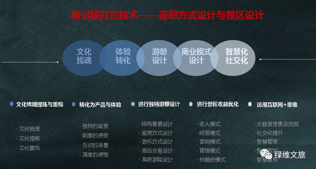 旅游产业的发展,可以划分为规划设计、招商引资、开发建设、持续经营四个阶段。泛旅游产业,落地到项目为单元,是基本的抓手和内容。