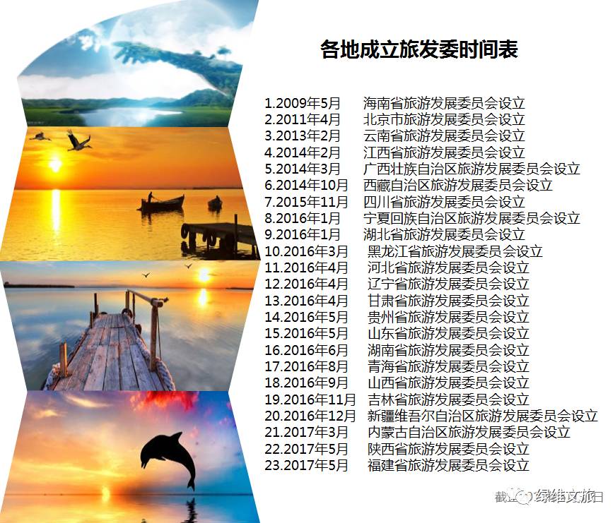 2009年海南旅游局更名,到2017年5月31日,已有23个省份将旅游局更名为旅游发展委员会。绿维文旅认为,旅发委的成立,是全域旅游下体制创新的重要举措,是积极适应新时期的旅游发展和解决现有问题的必须选择,是经济新常态下旅游业快速崛起的大势所趋。