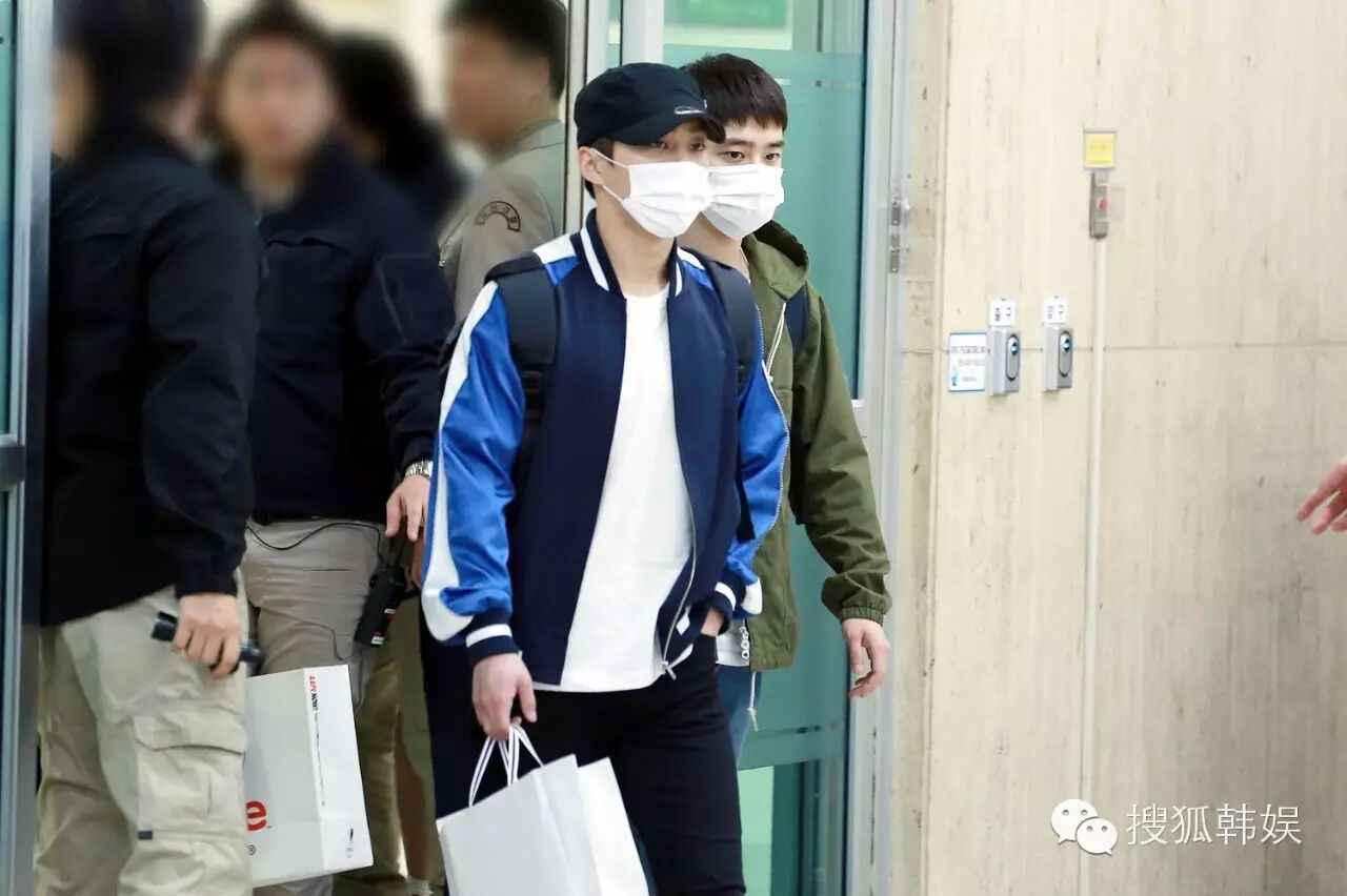 搜狐韩娱讯 5月4日中午,韩国人气男子团体EXO结束在日本武道馆举办的粉丝俱乐部活动经由金浦机场返回韩国。