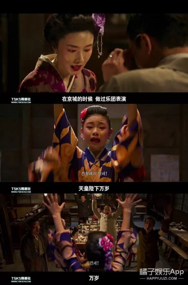他的女儿素姬在陪酒的时候听到唱片里播放了她的歌,立刻跑到台上焦急的哭着跳舞,告诉日本人自己是这首歌的原唱,唱歌跳舞乐器洗衣服……她会的很多,什么都能干。
