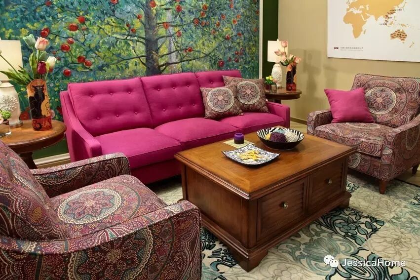 玫红色三人位