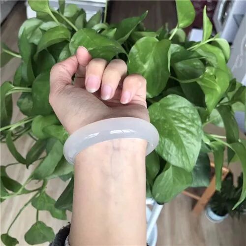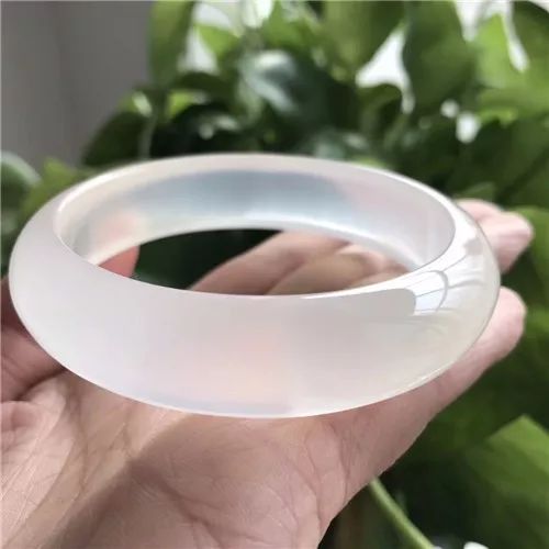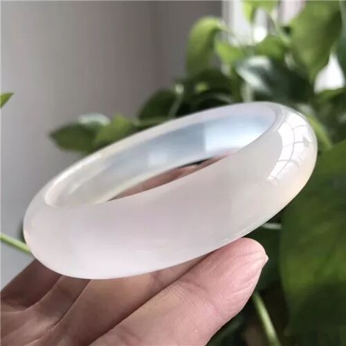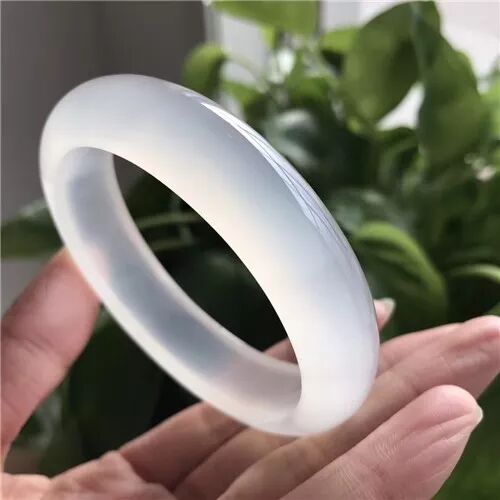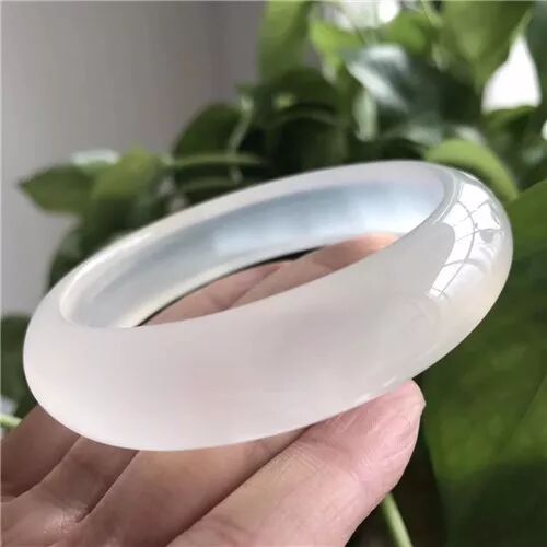 极品高冰马料纯天然白冰玉髓手镯质地细腻全冰透、水润十足、清澈透亮、泛荧光、无杂无黑点!