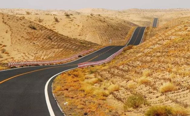 在新疆,有一条目前世界最长的贯穿流动沙漠的等级公路,叫塔克拉玛干沙漠公路。