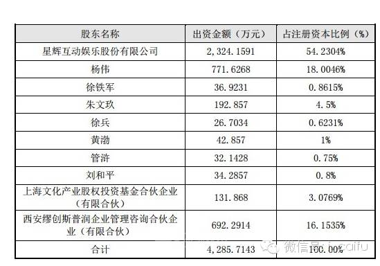 2015年12月4日,A股上市公司互动娱乐(300043,股吧)(300043.SZ)以18亿的预估值收购西安曲江春天融和影视文化有限责任公司100%股权。而在春天融合的股东名单里,赫然有演员黄渤的名字。
