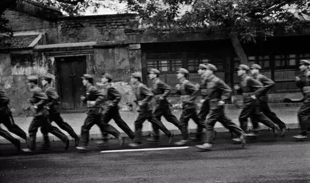 军队大院里跑步的军人