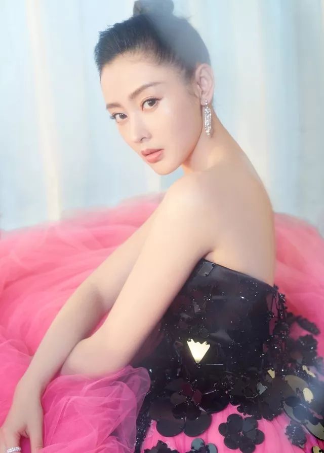 张天爱露背连衣裙,飒爽冷艳的妆容搭配魅惑的眼神,彰显独特气质