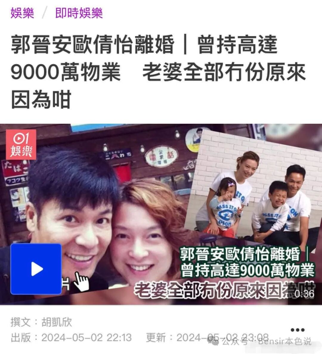 另外也有传郭晋安名下有价值9000万的物业,统统不肯写老婆名,令得欧倩怡心灰意冷!