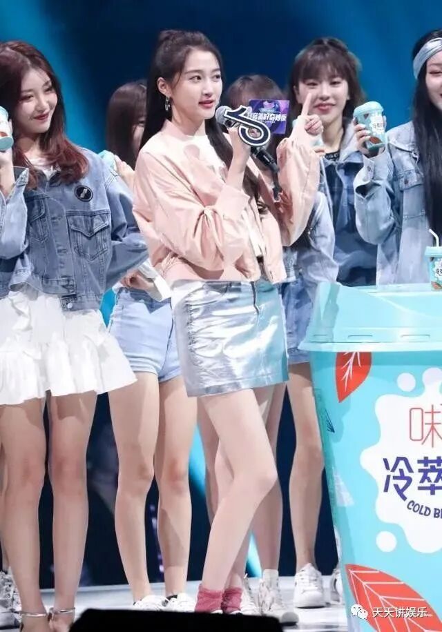 作为娱乐圈有名的腿精,关晓彤的身材很有优越感,和女团站一起时,就她的腿型最好看,纤细又白皙,而在她的上身穿了一件米粉色的外套,短款的外套穿起来比较容易显腿长,接着往下看,她搭配了一条银色的半身裙,这条银色的半裙唯一的亮点就是它看起来像锡纸一样,在灯光下闪闪发光,令她的造型看起来更抢眼!