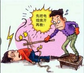 3、发现有人触电,在救助触电者时,首先要切断电源。在切断电源之前,千万不要用手去拉触电者,否则救助者也会触电。如果无法切断电源,救助者要穿上绝缘胶鞋,或带上绝缘手套,或站在干燥的木板上,用干燥的木棍、竹竿等去挑开触电者身上的电线。