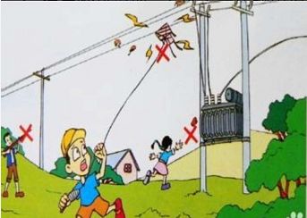 2、在户外玩耍时,要远离高压输电设备及配电室之类的地方。不要在高压线附近放风筝,不要到配电室中去玩。