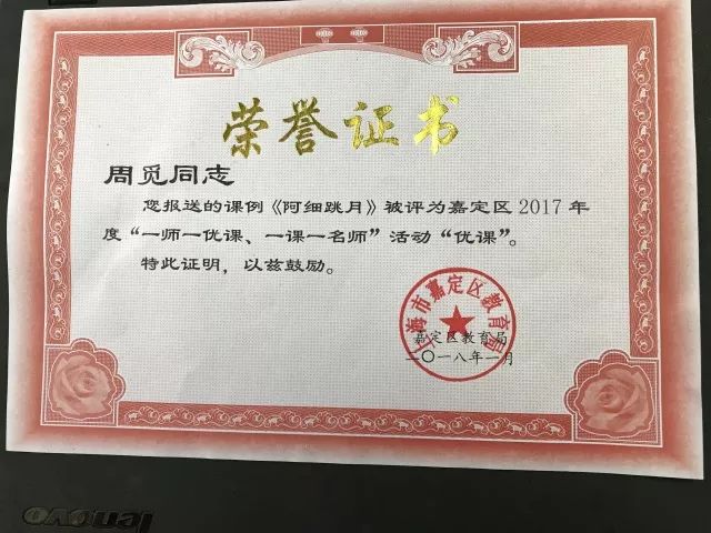 在嘉定区2017年度“一师一优课 一课一名师”活动中,吴燕婷老师的课例《谁的本领大》和周觅老师的课例《阿细跳月》被评为“优课”。