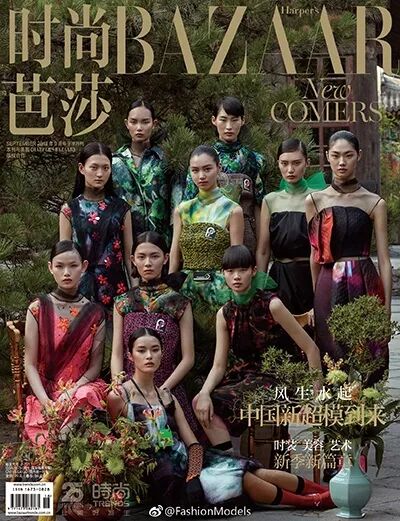 《Harper's Bazaar时尚芭莎》九月下也做了类似的专题策划——集结十位中国新生代超模共同演绎封面,与八年前《时尚芭莎》第一次把封面交给超模(2010年3月刊封面集结了孙菲菲、雎晓雯、秦舒培三位国际超模)遥相呼应,展示出时尚更新迭代的历史演进