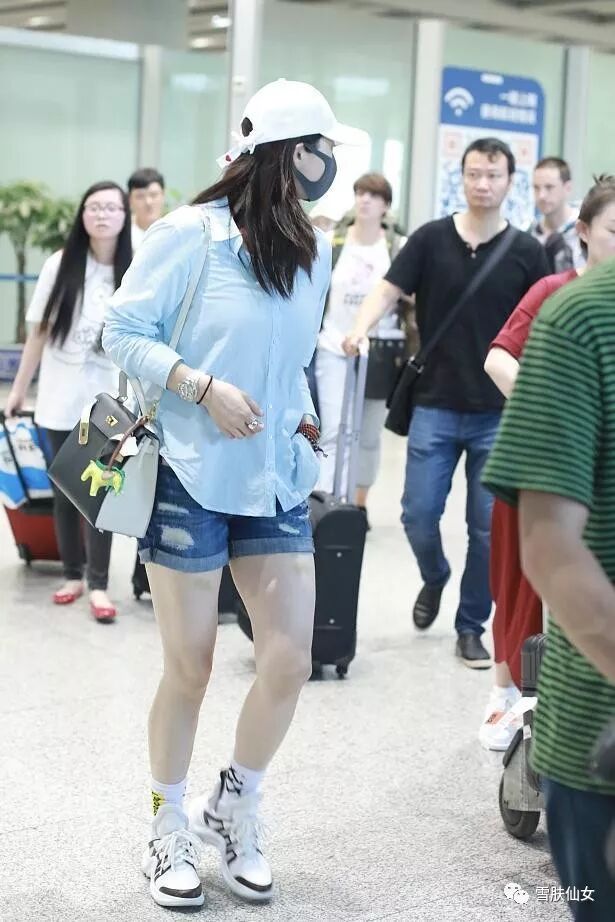 不仅如此,蒋欣还穿过短裤秀腿。选择基础款式的衬衫搭配牛仔短裤,虽然非常接地气,但是这样穿很容易暴露身材的缺陷呀,并没有穿出时髦感。但是,你们见过蒋欣最新的机场造型吗?瘦下来的蒋欣美起来可是一点儿不低调了哦。
